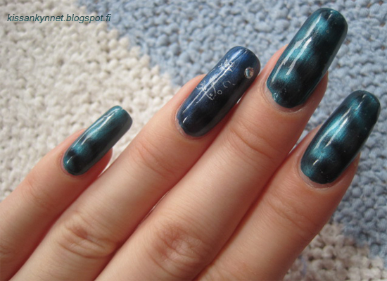 Itse tykkäsin näistä kynsistä kovasti. Nämä ovat varmaan lempparikynteni, jotka olen tehnyt ja tämä lakkaus pysyikin mulla kynsissä melkein kaksi viikkoa. Oli mulla kyllä näitä tehdessä joitain pieniä vastoinkäymisiä. Models Ownin Endamame kupli yhtä innokkaasti kuin ennenkin ja osa kynsistä piti lakata kokonaan uusiksi. Leimat menivät hyvin, paitsi että peukusta ja pikkurillistä musta lakka meinasi vähän levetä, kun laitoin päällyslakan.